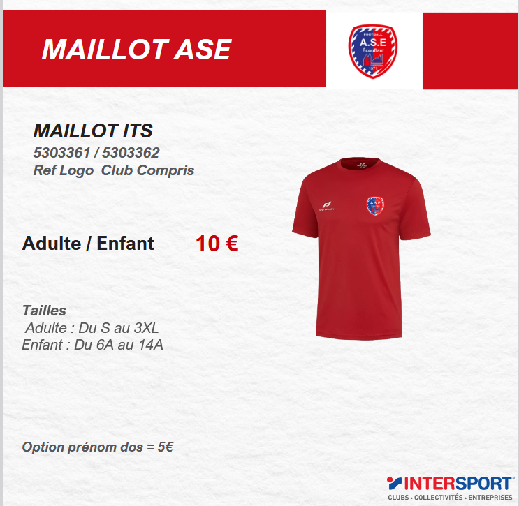 Maillot Rouge Logo ASE Poitrine 10 €.